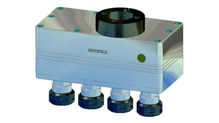 帶有夾緊環(huán) B100 的 VS16 齒輪箱也可以由鉆孔主軸 B045 和驅動單元 D045 驅動。此外,使用我們的驅動適配器 DN 和 DMN 可以適應機床主軸以及 GROTEFELD 旋轉單元 DVM。